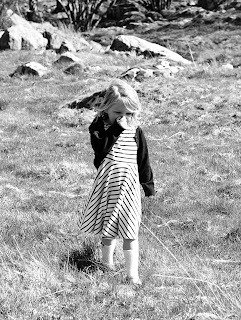 Wilma har på seg kjole, cardigan og verdens søøøøteste knesokker. Jeg er så svak for kne sokker :)