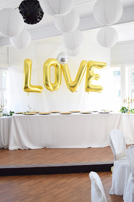 Og hvor HIMLA RÅÅÅ er vel ikke bokstavene LOVE fra www.festfabrikken.no ?? sammen med diskokula mi så ble det skikkelig glam stemning. Perfekt som backdrop bak kakebordet ;)